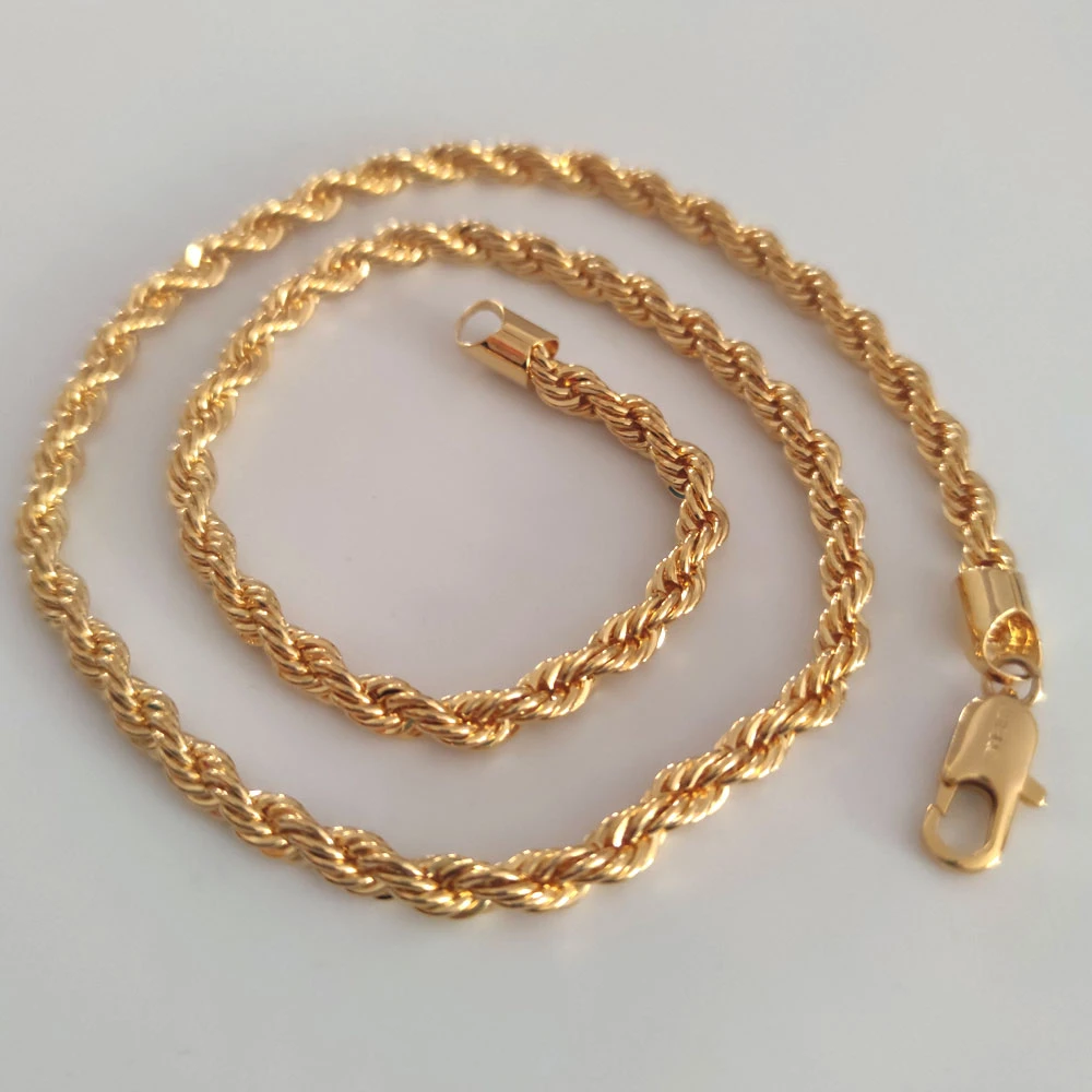Mens Thick 6mm Rope Chain Real 24k Yellow Gold Gf Diamond Cut Twisted Solid New Xp Jewelry Fancy Original Picture Necklace Aliexpress